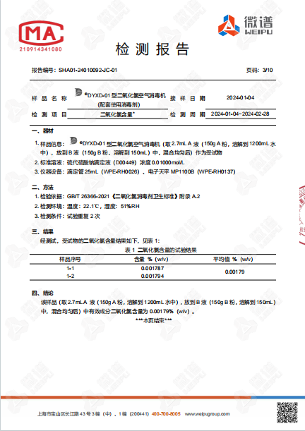 空氣消毒機(jī)檢測報告