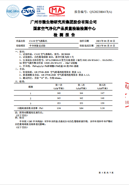 空氣消毒機(jī)檢測(cè)報(bào)告