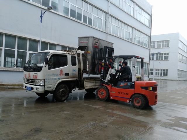 風雨無阻,發往山東棗莊的自動脫毛機裝車實拍圖片