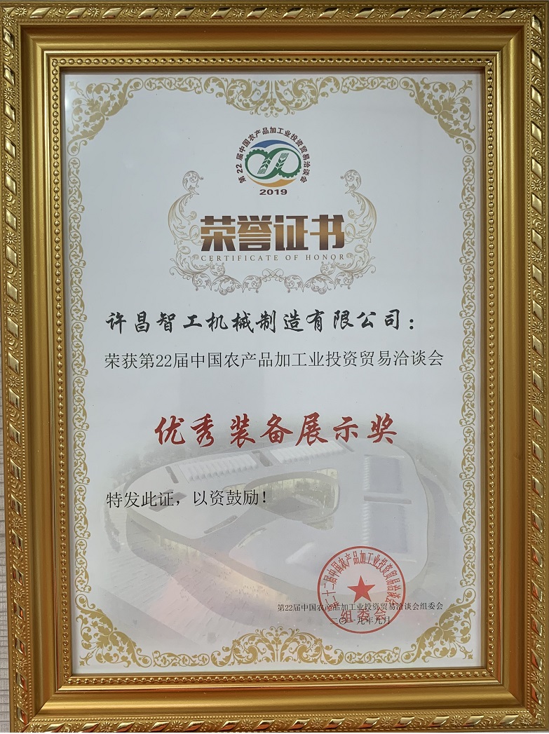 許昌智工榮獲中國農(nóng)產(chǎn)品加工業(yè)優(yōu)秀裝備獎(jiǎng)